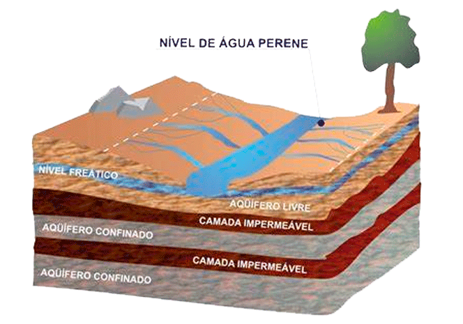 subterrânea.Rochas porosas e permeáveis, capazes de
