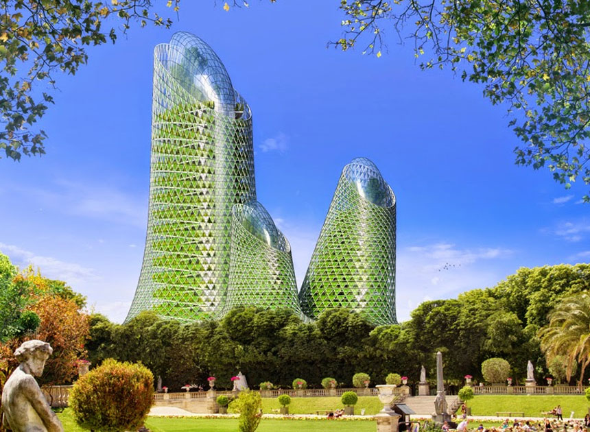 pensou em morar em um edifício verde entre um dos mais modernos