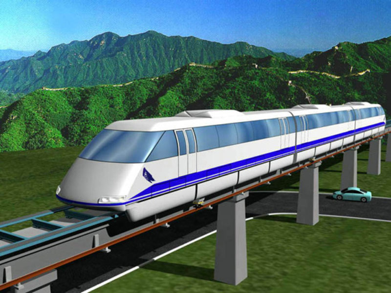 Trens movidos a eletroimãs atravessando